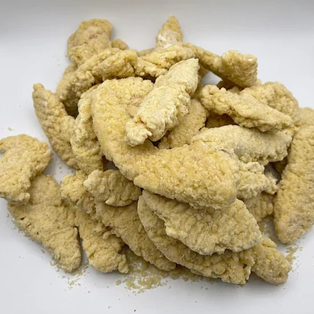 Tender chicken breast strips, prepared for grilling, frying, or roasting.