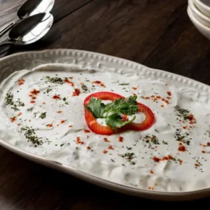 Refreshing Haydari made with strained yogurt, garlic, and aromatic herbs.