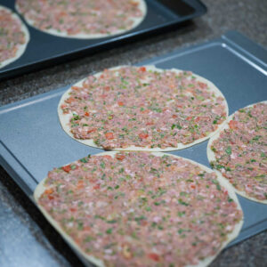 A traditional Turkish flatbread topped with a flavorful mix of…
