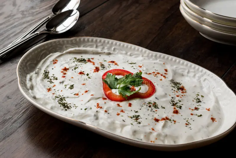 Refreshing Haydari made with strained yogurt, garlic, and aromatic herbs.
